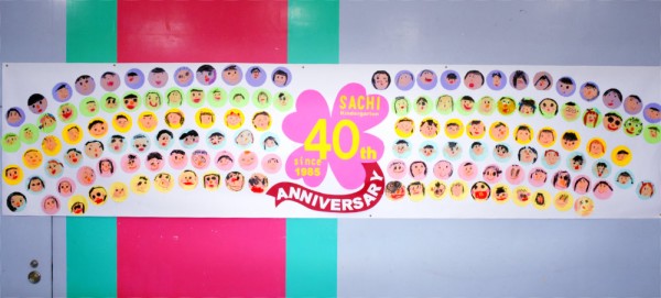 40周年記念パネルに在園児が描いた自画像を配置しました
