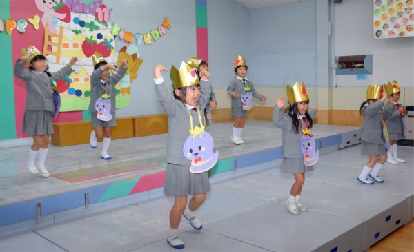 ダンス「ケラケラじゃんけん」を楽しく踊る誕生児たち