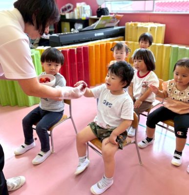 イチゴ摘み〈2歳児〉 令和7(2025)年6月11日