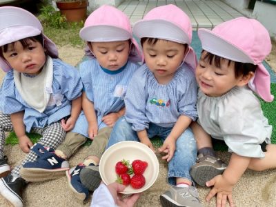 • イチゴ摘み〈2歳児〉 令和7(2025)年6月11日