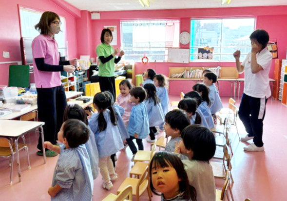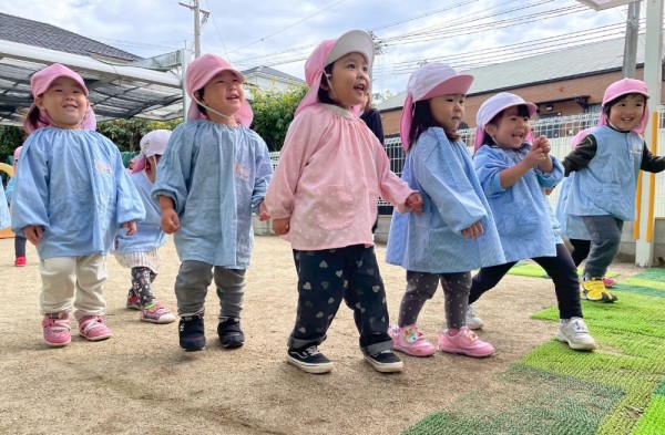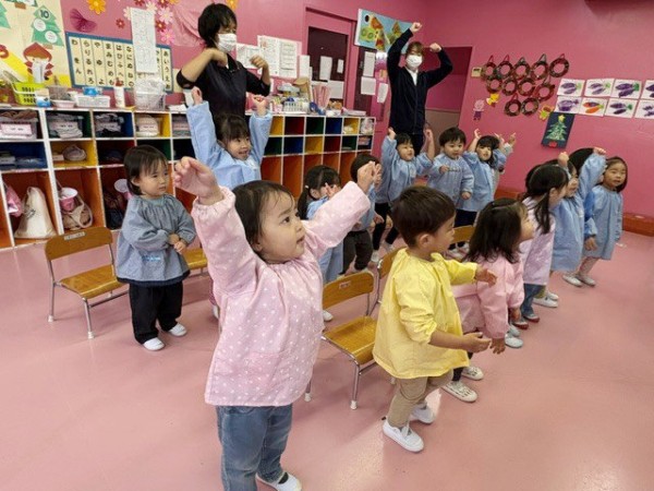 「だるまさんがころんだ!」先生の言葉に子どもたちは「ストップ」と声を出して止まります